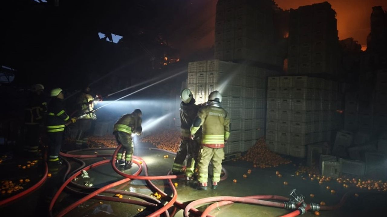 Hürriyet Mahallesi'ndeki bir narenciye paketleme tesisinde henüz belirlenemeyen nedenle yangın çıktı.