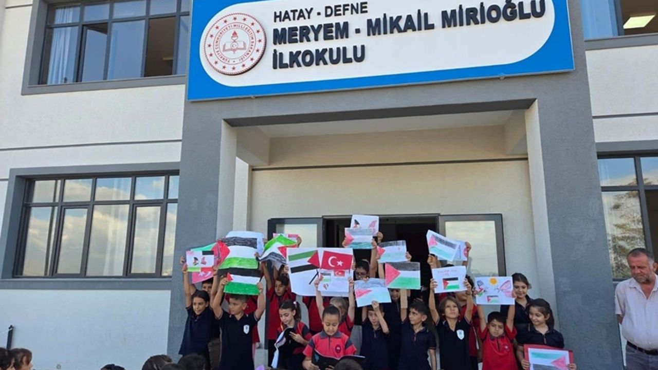 Hatay’daki Meryem Mikail Mirioğlu İlkokulu da etkinliğe katılan okullar arasında yer aldı. Öğrenciler, okul bahçesinde düzenlenen programda şiirler okuyup marşlar seslendirdi; hazırladıkları resimleri sergileyerek Filistin halkına olan dayanışmalarını ifade etti.