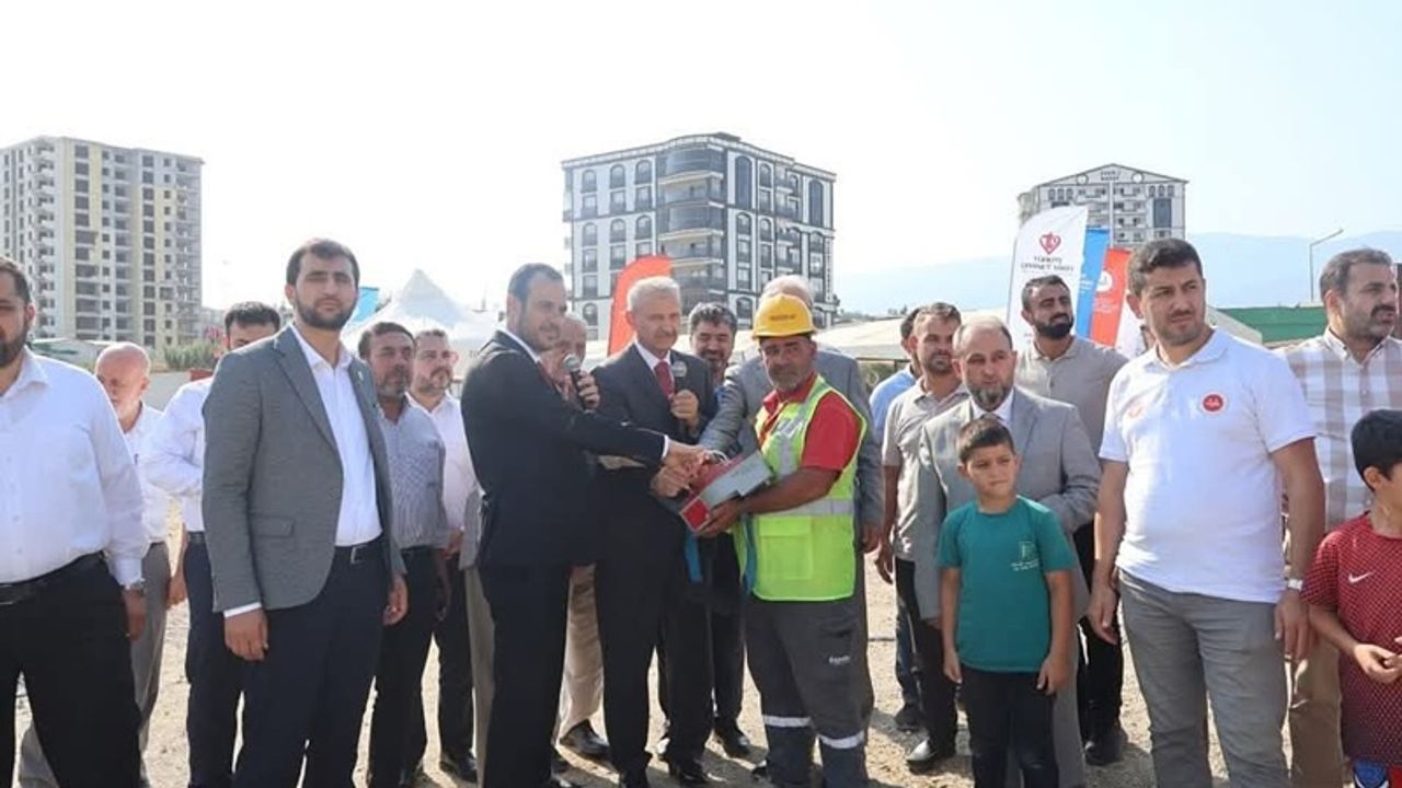 Temel atma törenine, TDV Genel Müdür Yardımcısı Recep Şükrü Balkan, Hatay İl Müftü Vekili Hasan Fındık, İl Müftü Yardımcıları, ilçe müftüleri, proje mimarı Salim Alp ile çok sayıda vatandaş katıldı