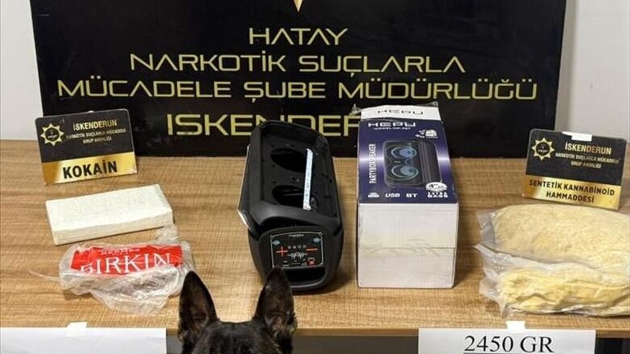 Narkotik dedektör köpeği yardımıyla yapılan aramada, aracın farklı yerlerine gizlenmiş 1 kilo 250 gram kokain ve 2 kilo 450 gram sentetik uyuşturucu ele geçirildi.