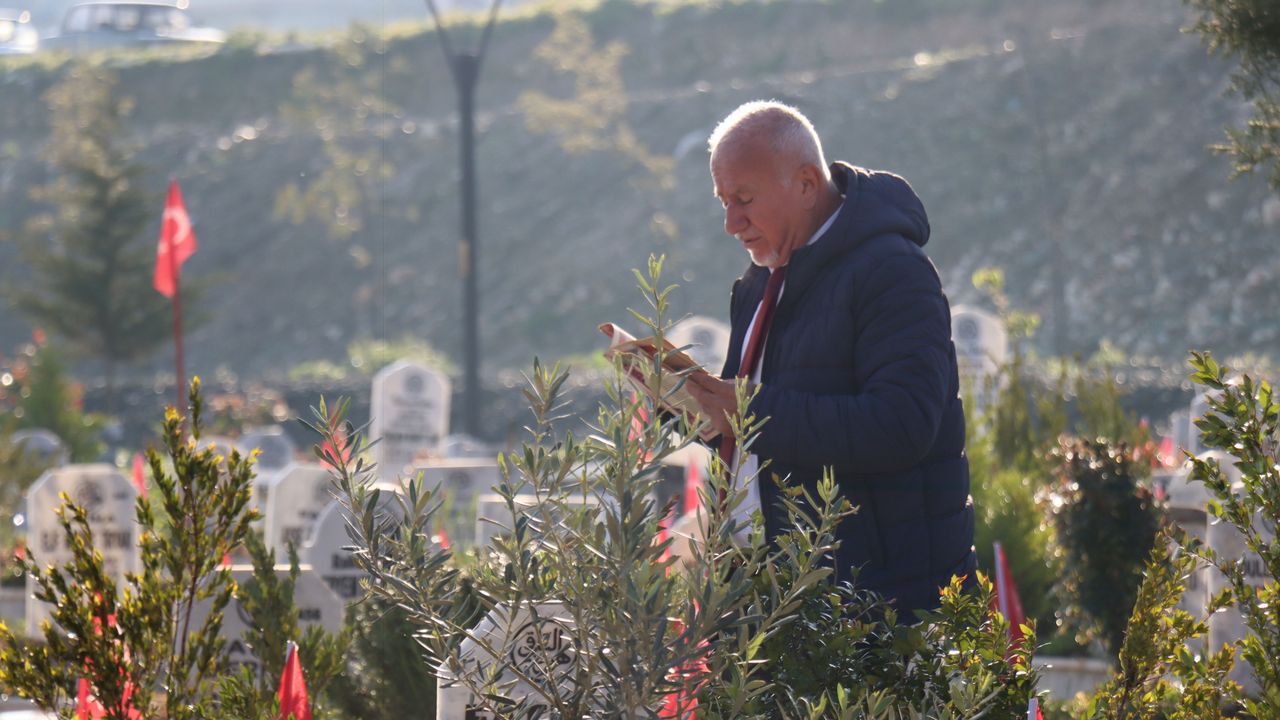 Kur'an-ı Kerim okuyan ziyaretçiler, mezar başlarında dua etti.