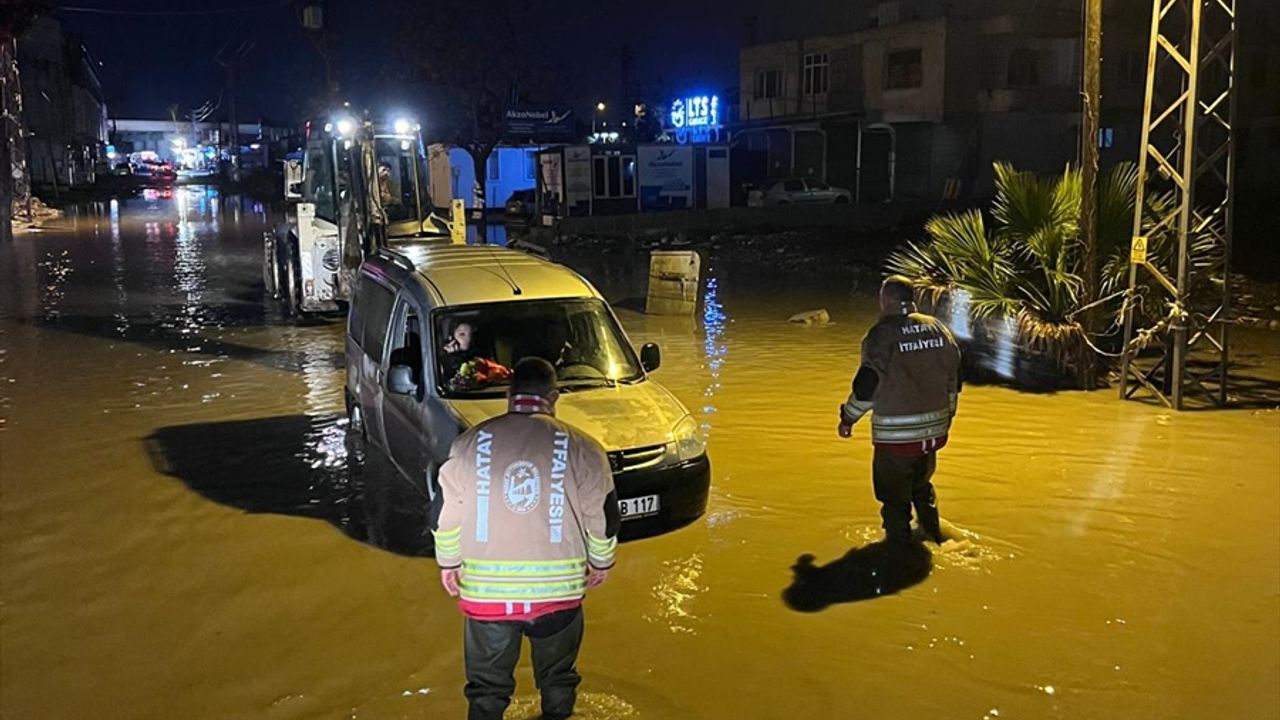 Araçlarında mahsur kalan vatandaşlar, Hatay Büyükşehir Belediyesi itfaiye ekiplerinin müdahalesiyle kurtarıldı.