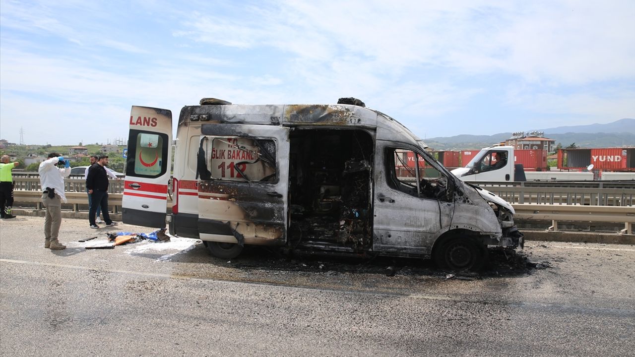 Yangında ambulans kullanılamaz hale geldi. Hasta ve hasta yakını başka bir ambulansla hastaneye sevk edildi. AA