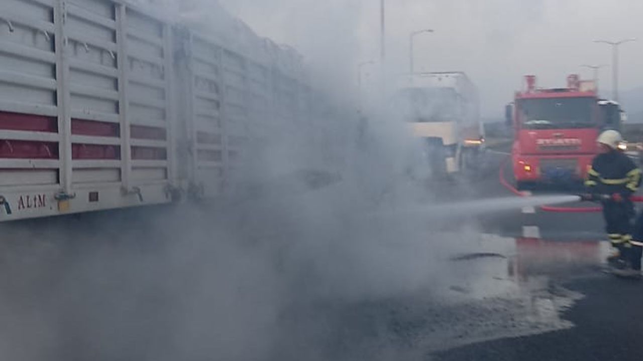 İhbar üzerine bölgeye sevk edilen Büyükşehir Belediyesi itfaiye ekiplerinin müdahalesiyle söndürülen yangın nedeniyle tırda hasar oluştu.