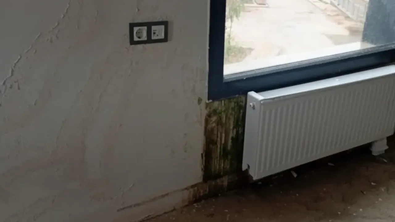 Y-11 blokta ev teslim alan bir vatandaş, dairesine girdiğinde beklenmedik sorunlarla karşılaştı. İddiaya göre odalardan birinde su sızıntısı bulunurken, tavan boyasının kabardığı ve yer yer döküldüğü görüldü. Nem nedeniyle duvarlarda oluşan yosunlaşma ise konutun henüz yeni teslim edilmiş olmasına rağmen ciddi yapı sorunlarını gözler önüne serdi.