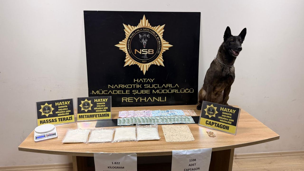 Adreste narkotik dedektör köpeği ile yapılan aramada 1 kilo 822 gram sentetik uyuşturucu, 1100 uyuşturucu hap, hassas terazi, 1900 dolar ve 4 bin 400 lira ele geçirildi, 1 şüpheli gözaltına alındı.
