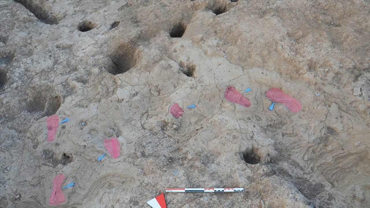 Bakanlıktan yapılan açıklamaya göre, 21 Ağustos 2025'te 8564 açmasında yapılan çalışmalarda gün ışığına çıkarılan ayak izlerinin, yoğun yağmura veya suya maruz kalmış çamurlu dolgu tabakasında yürüyen bireylere ait olduğu belirlendi.