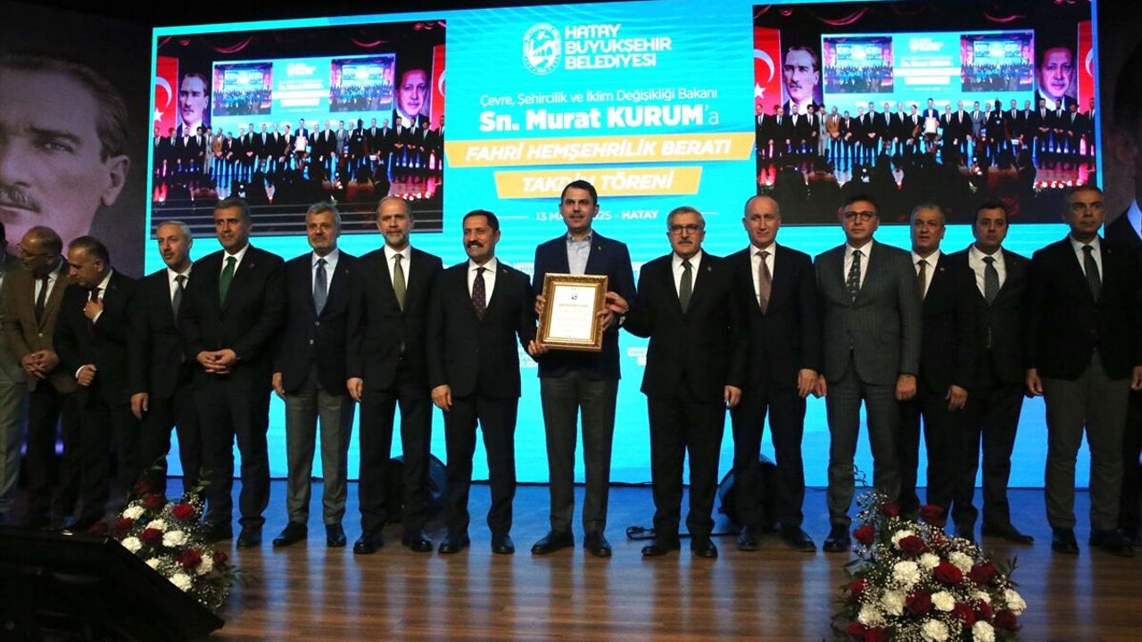 Çevre, Şehircilik ve İklim Değişikliği Bakanı Murat Kurum’a Hatay’daki gayretli çalışmaları nedeniyle hemşehrilik beratı verildi. Bakan Kurum “Hatay sevdamız hemşehrilik beratıyla taçlanıyor. Bölgenin parlayan yıldızı haline getirecek adımları atacak ve inşallah Hatay'ımızı şaha kaldıracağız" dedi.