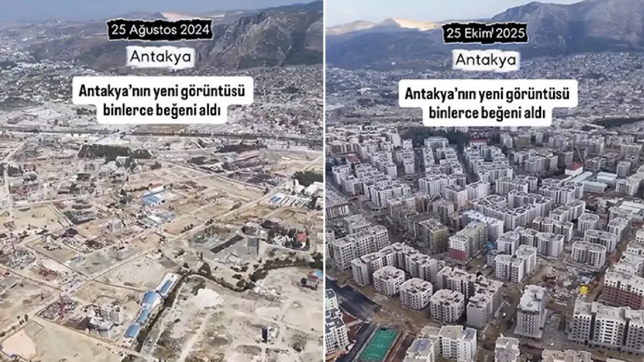 Depremin ardından büyük yıkıma uğrayan Hatay’ın birçok bölgesi, iki yıl içinde adeta küllerinden doğdu. Görüntüleri izleyen sosyal medya kullanıcıları, “Hatay kısa sürede yeniden ayağa kalkmış” yorumlarıyla emeği geçenlere teşekkürlerini iletti.
