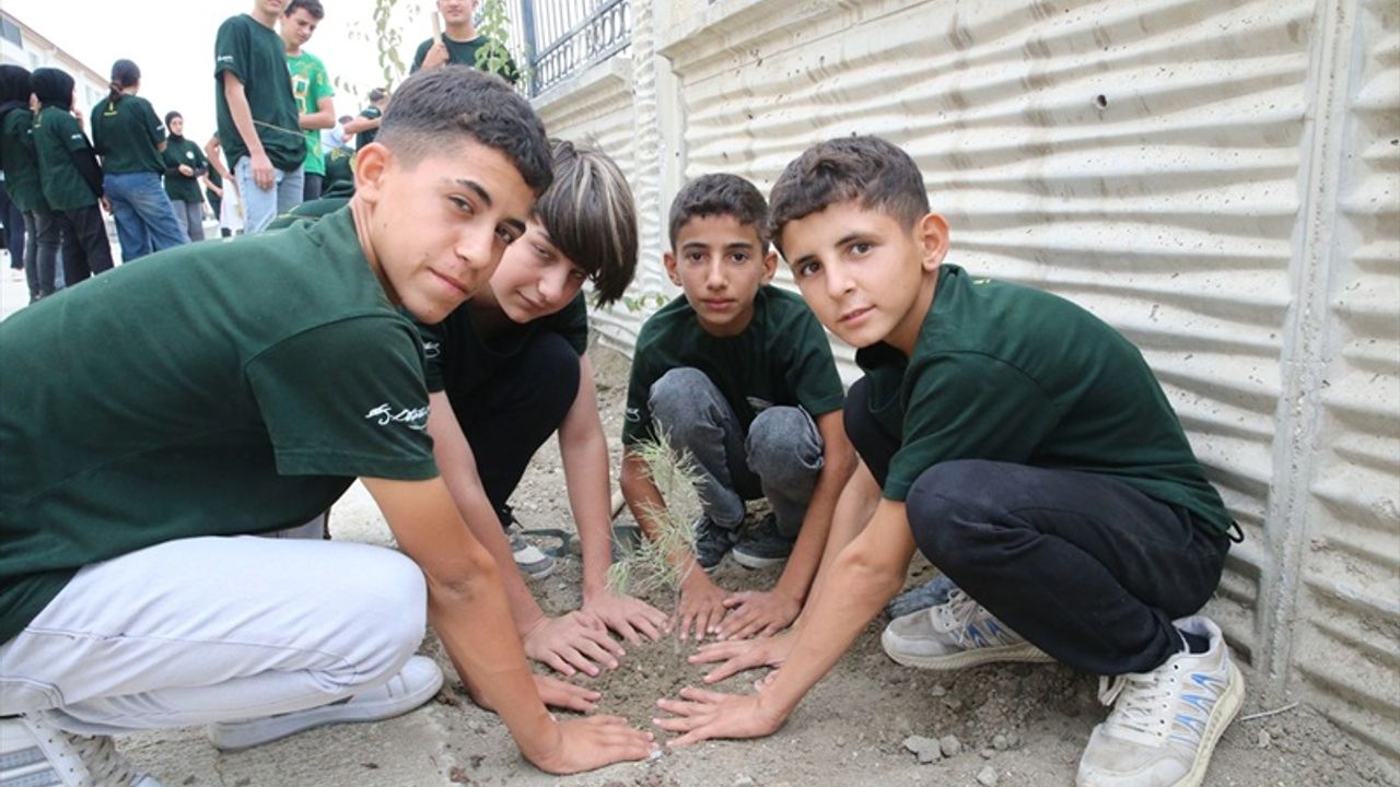 Öğretmenlerinin öncülüğünde çam, defne, limon ve mandalina fidanlarını toprakla buluşturan öğrenciler, eğitimlerini yerinde deneyimleme şansı buluyor.