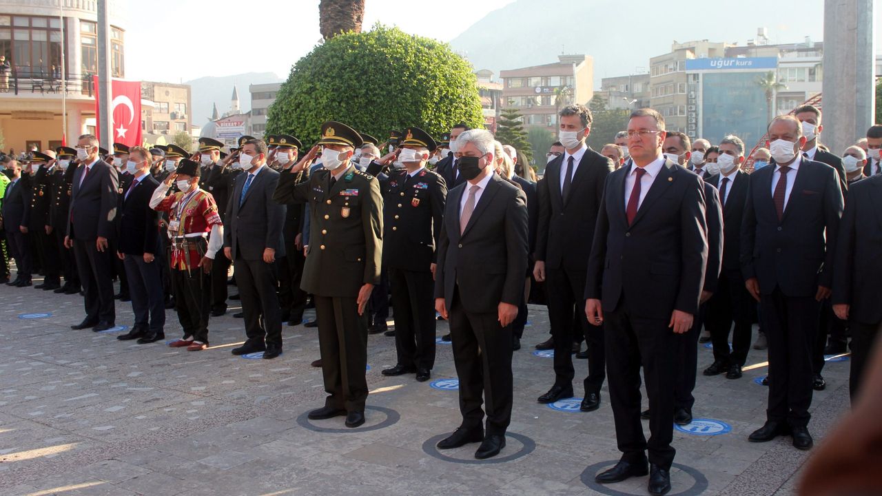 Törene Hatay Valisi Rahmi Doğan, Garnizon Komutanı Piyade Albay Tayfun Çağan ve Hatay Büyükşehir Belediye Başkanı Doç. Dr. Lütfü Savaş başta olmak üzere, çeşitli kurum ve kuruluş temsilcileri, siyasi parti temsilcileri, askeri erkân, gaziler ile öğrenciler ve vatandaşlar katıldı.