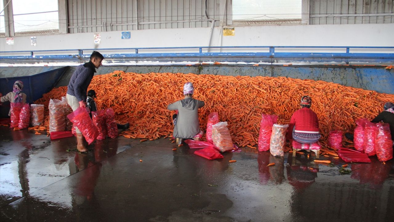 Burada çamur kaplı havuçlar, suyla yıkanıp, kadınlar tarafından paketlenerek yurt içi ve dışına satılıyor.