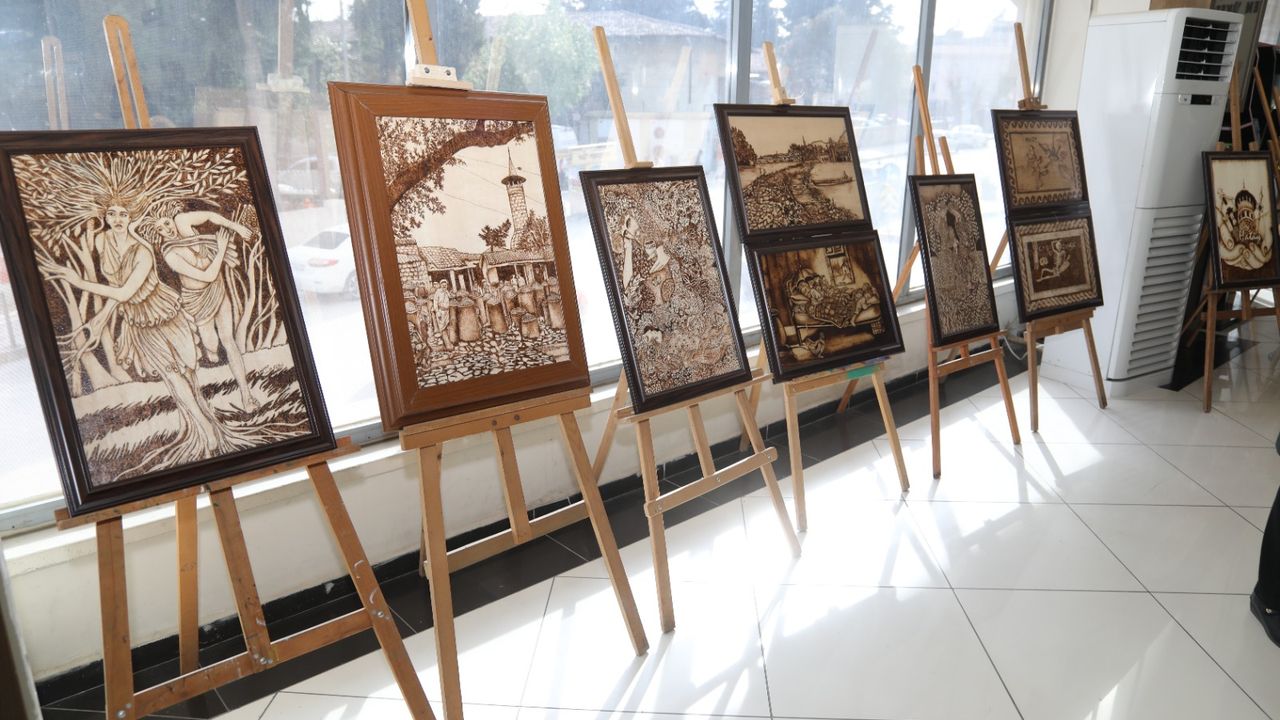 Hataylı resim ve yakma sanatçılarının hazırladığı birbirinden kıymetli eserler HBB binasının girişindeki yerini aldı.