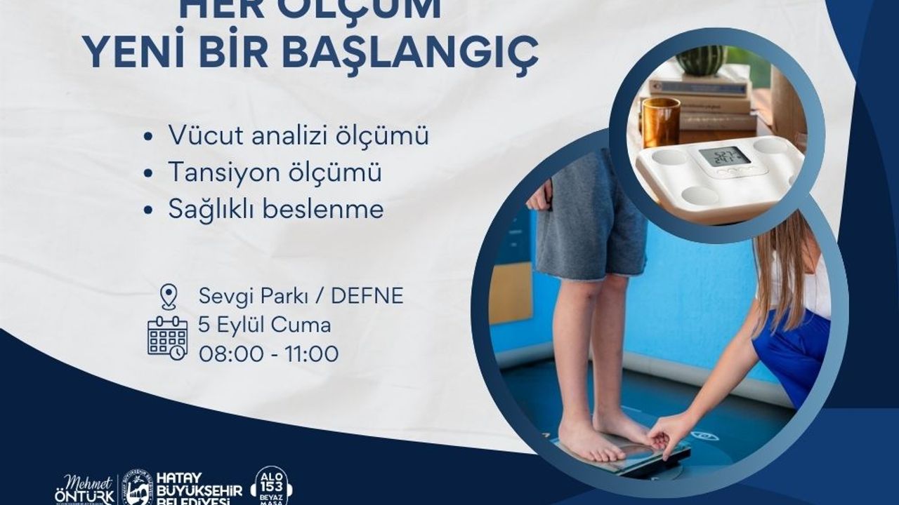 Her yaştan bireyin sağlığına önem veren bu etkinlik, 5 Eylül Cuma günü 08.00 – 11.00 saatleri arasında Sevgi Parkı / Defne lokasyonunda halka açık olarak hem mevcut sağlık durumunu öğrenme fırsatı bulacak, hem de sağlıklı yaşam konusunda vatandaşlar bilinçlenecek.