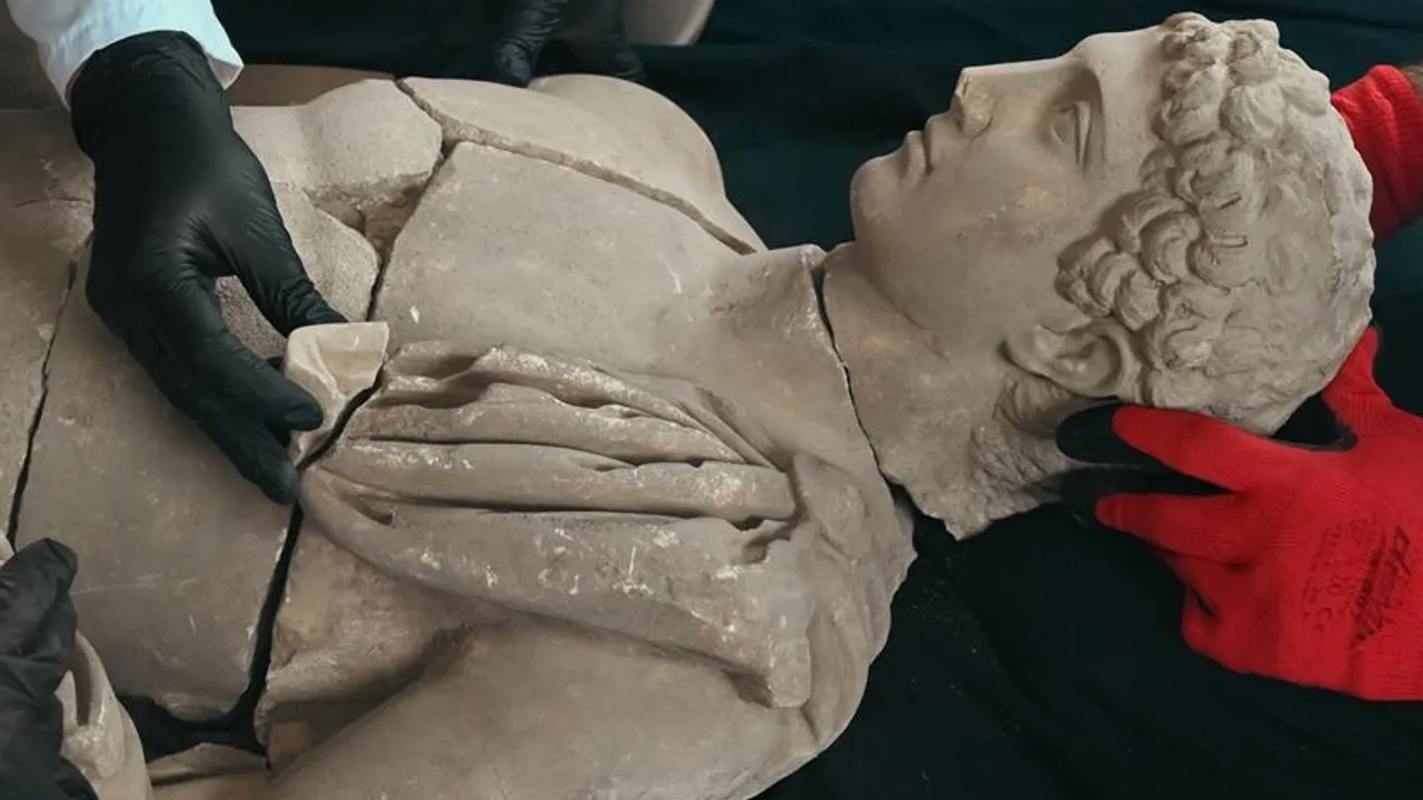 Kültür ve Turizm Bakanlığı tarafından yürütülen “Geleceğe Miras Projesi” kapsamında Aspendos Antik Kenti’nde devam eden 2025 yılı kazı çalışmalarında önemli bir keşfe imza atıldı. Anıtsal çeşmenin (nymphaion) yıkıntıları arasında, mermer bir Hermes heykeli bulundu.ANKARA (İGFA) - Aspendos’ta gün ışığına kavuşan eserleri sosyal medya hesaplarından duyuran Kültür ve Turizm Bakanı Mehmet Nuri Ersoy, yeni bir keşfe ilişkin duyuruyu yine sosyal medya hesabından yaptı.