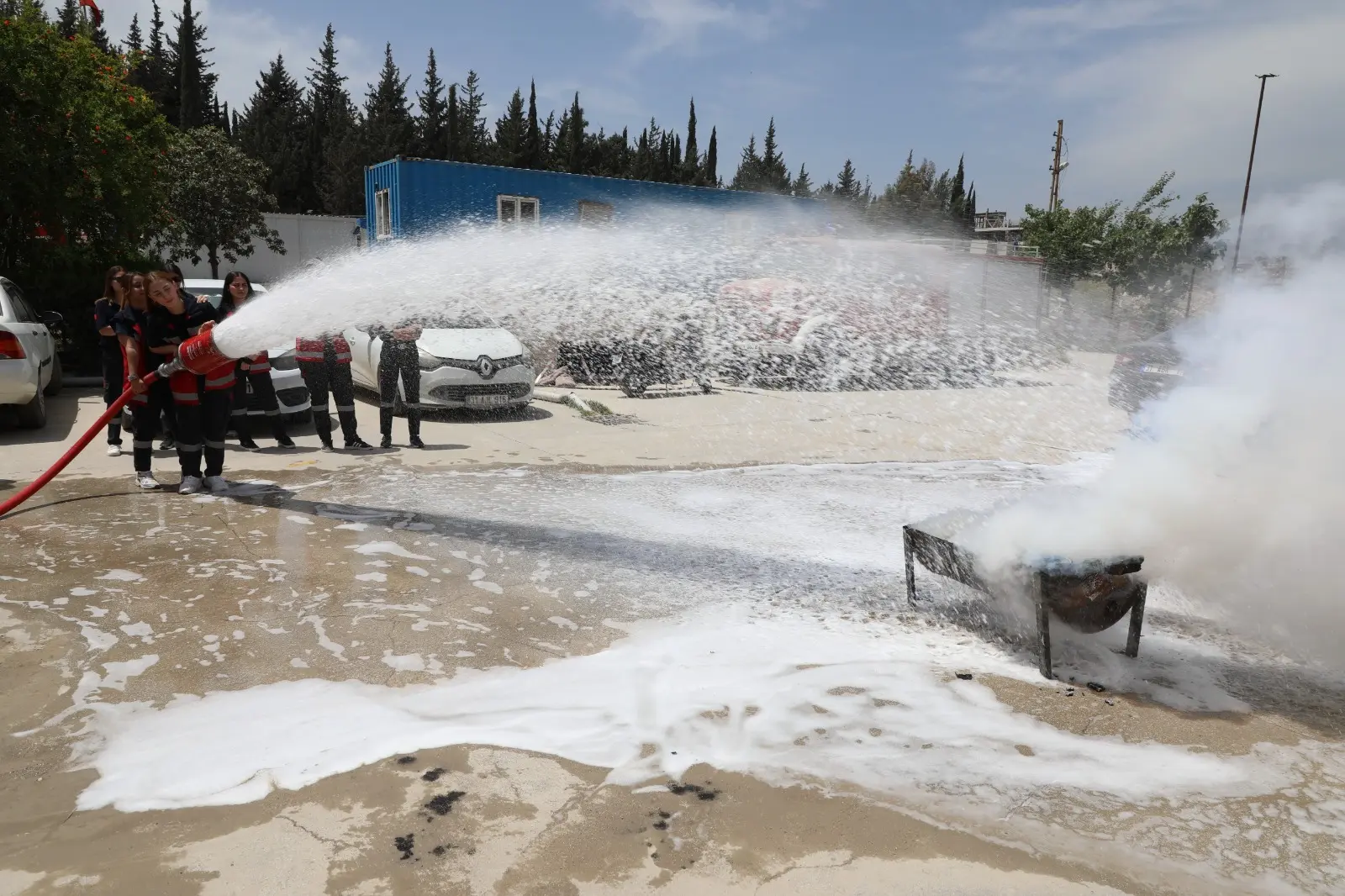 Eğitimin ardından düzenlenen tatbikatla öğrenciler tahliye ve yangın söndürme konusunda edindikleri bilgileri pratiğe dökerek deneyim kazandı.