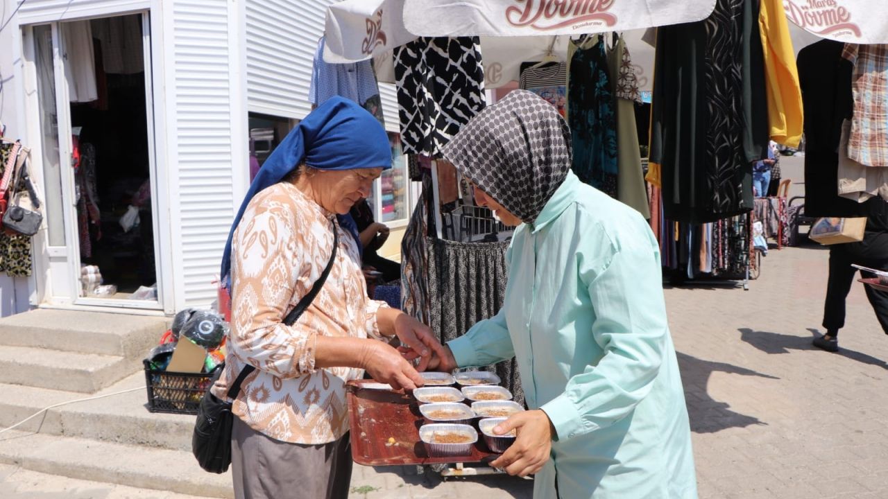 İbradı Belediyesi tarafından düzenlenen etkinlikte Başkan Hatice Sekmen, kazan başına geçerek, aşureyi ilçe halkına kendisi dağıttı.