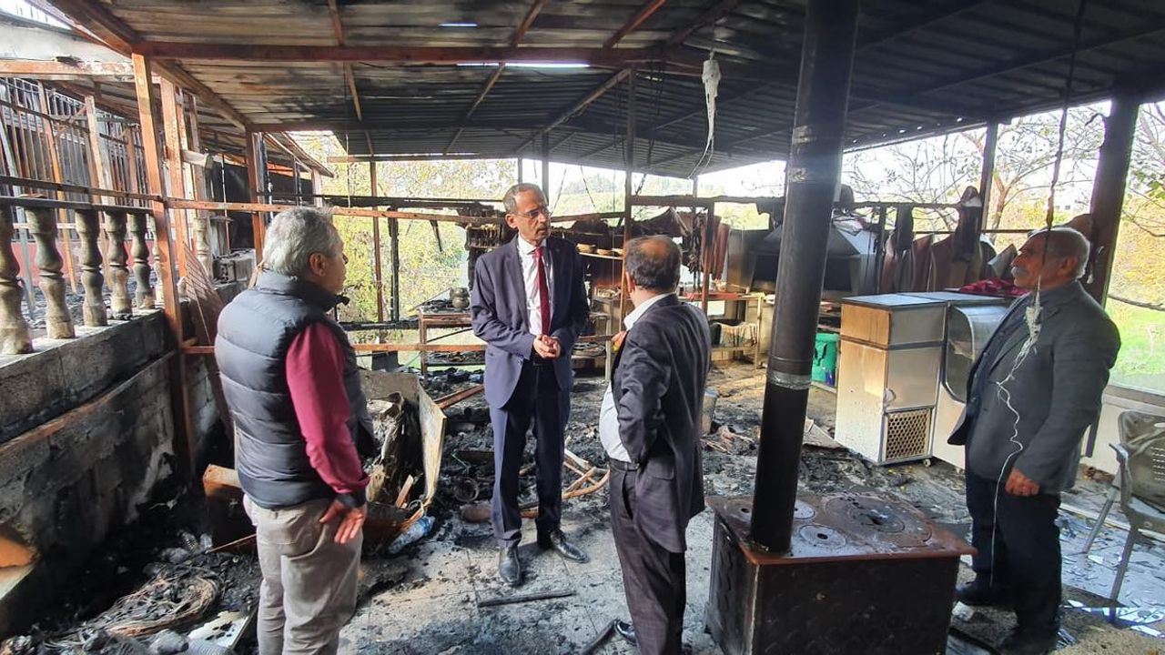 Defne Belediye Başkanı İbrahim Güzel, geçtiğimiz günlerde çıkan yangın sonucu maddi hasar meydana gelen iki işletmede incelemelerde bulundu.