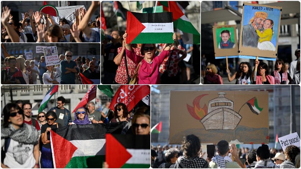 İsrail ile silah ticaretinin durdurulmasını ve tüm ilişkilerin askıya alınmasını talep eden göstericiler, Gazze'ye doğru hareket eden Küresel Sumud Filosu'na destek çağrısında bulundu.