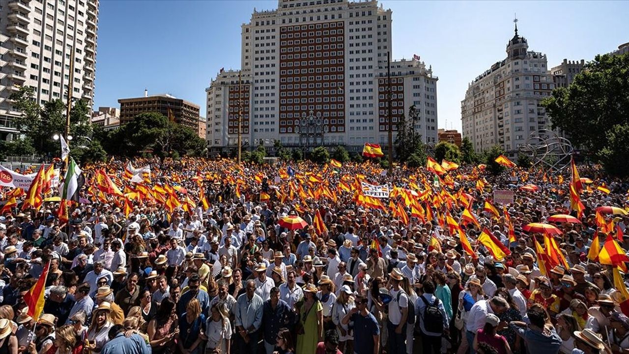 MADRİD (AA) - PP, Kasım 2023'ten bu yana iktidarda olan koalisyon hükümetine karşı 6. kez destekçilerini meydanlara döktü.