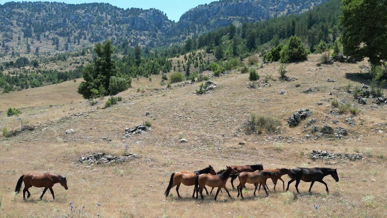 ISPARTA (AA) - BAHADIR ARICI - Isparta'nın Aksu ilçesinde uzun yıllardır varlıkları bilinen ve genellikle yaylalarda yaşayan yılkı atları, kuraklık nedeniyle son yıllarda yerleşim yerleri yakınında daha sık görülmeye başlandı.