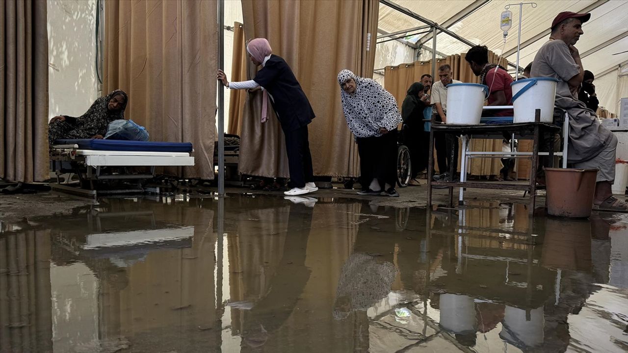 GAZZE (AA) - Hastanenin acil servisinin sular altında kalmasıyla doktor ve hemşireler kanalizasyon sularında güçlükle hareket etti.
