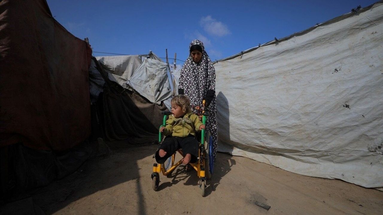 ANKARA (AA) - Gazze'nin güneyindeki Mağraka bölgesinden ailesiyle birlikte göç ederken İsrail'in saldırılarında yaralanan küçük Kamer'in kalça bölgesine saplanan şarapnel parçası, leğen kemiğinde kalarak vücudunun alt kısmında felce yol açtı.
