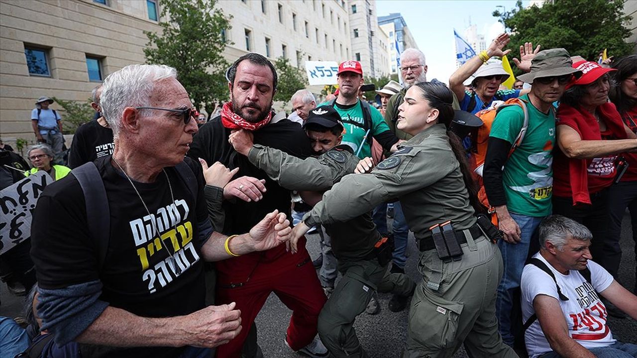 Protestocuların Başbakanlık Ofisi'ne giden yolu kapatmasının ardından polis alanda toplanan yüzlerce İsrailliye sert müdahalede bulunarak dağıtmaya çalıştı.