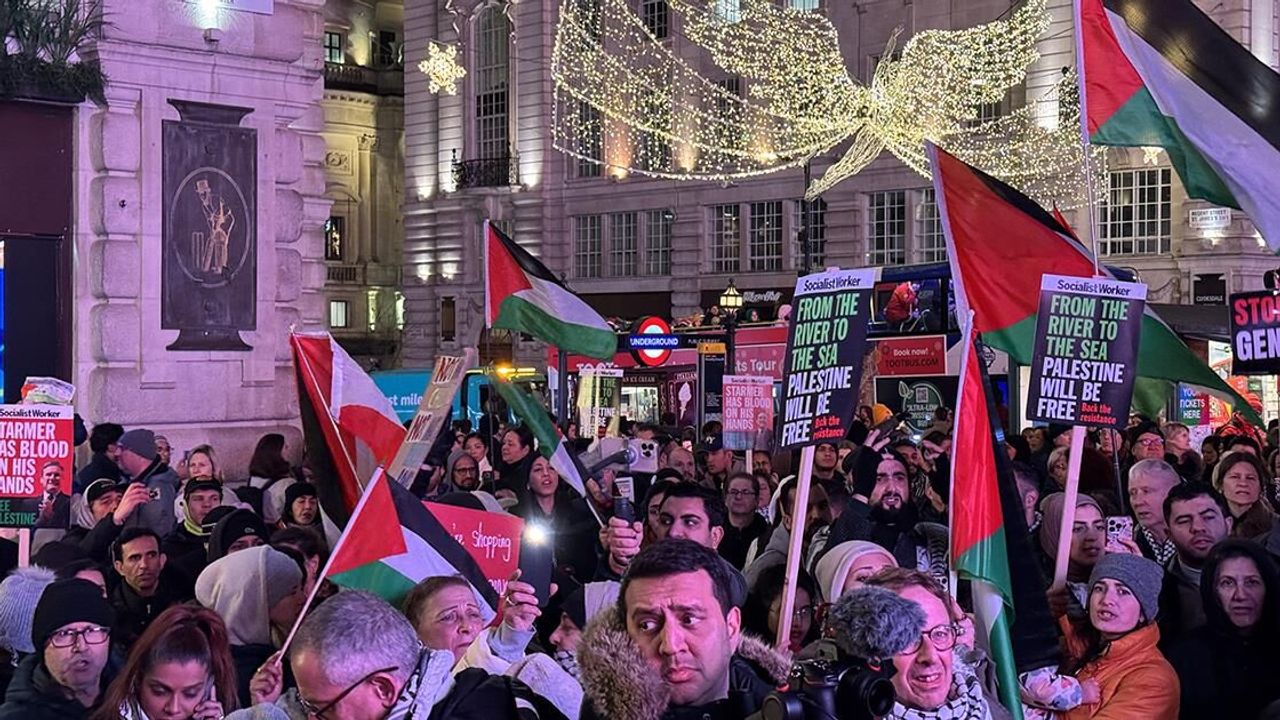 LONDRA (AA) - Britanya Filistin Forumu ve Filistin için Sağlık Çalışanları adlı sivil toplum kuruluşlarının çağrısıyla yüzlerce kişi, İsrail'in Gazze'deki sağlık altyapısına yönelik saldırılarını protesto etmek için kentin ünlü Piccadilly Meydanı'nda bir araya geldi.