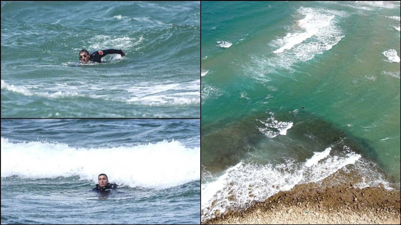 Akıntıda yaklaşık 100 metre sürüklenen Ünal, panik yapmadan sakinliğini koruyup yüzerek, kapıldığı akıntıdan çıktı. O anlar, AA ekibince dronla görüntülendi.