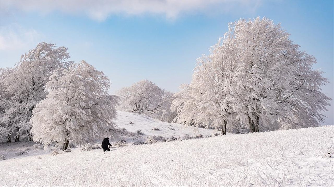 Hava sıcaklığının sıfırın altında 5 derece ölçüldüğü Mahyatepe mevkisinde, ormanlık alanda kartpostallık görüntüler oluştu.
