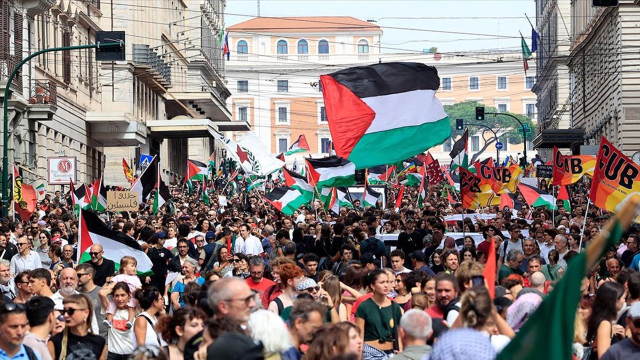 ROMA (AA) - İsrail'in Gazze'ye yönelik Ekim 2023'ten bu yana aralıksız sürdürdüğü saldırılara karşı İtalya'da bugüne kadarki en geniş ve büyük protesto yapıldı.