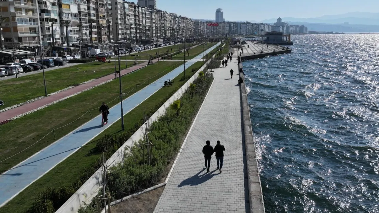 Alsancak Limanı’ndan Cumhuriyet Meydanı’na kadar olan bin 700 metrelik sahil şeridinde kıyıya paralel geçici fırtına duvarının yapımı tamamlanırken, kıyı boyunca yapılan peyzaj düzenlemeleriyle Kordon daha yeşil bir görünüme kavuştu. Park ve Bahçeler Dairesi Başkanlığı tarafından yürütülen peyzaj düzenlemesinde, su taşkınlarına ve iklim krizinin etkilerine dayanıklı bitkiler tercih edilerek Kordon’da yıl boyunca yeşil dokunun korunması hedeflendi. Alanda peyzaj düzenlemelerinin devam ettiği, kent mobilyaları, oturma ve yeni aktivite alanları ile seyir teraslarının montajının ardından çalışmaların tamamlanacağı bildirildi.