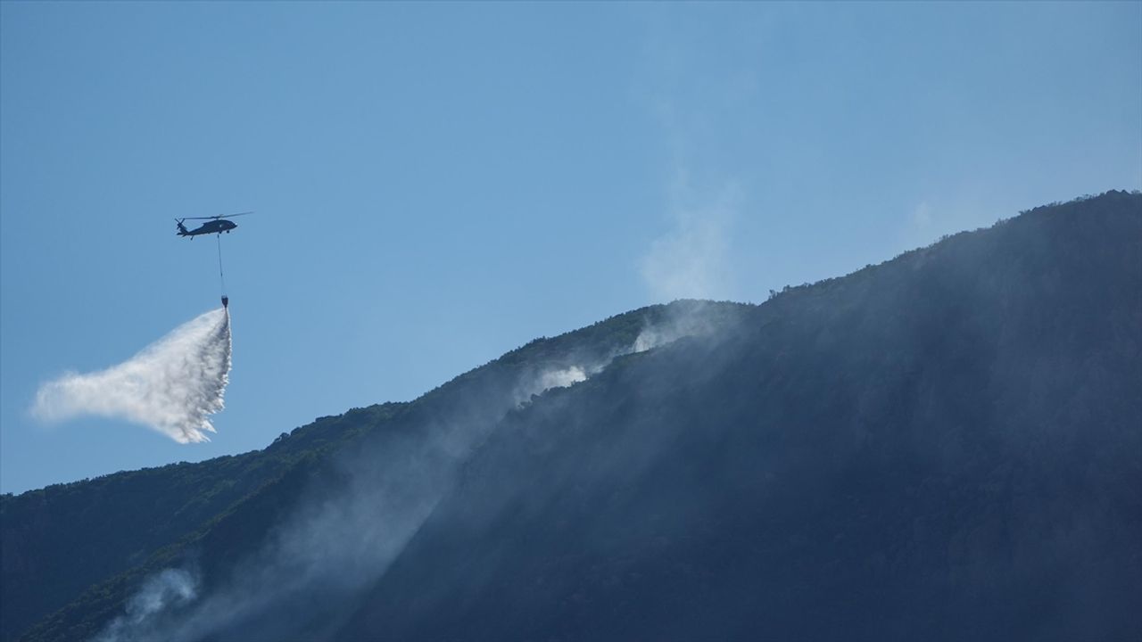 Türk Silahlı Kuvvetlerine (TSK) ait helikopterler de söndürme çalışmalarına destek veriyor.