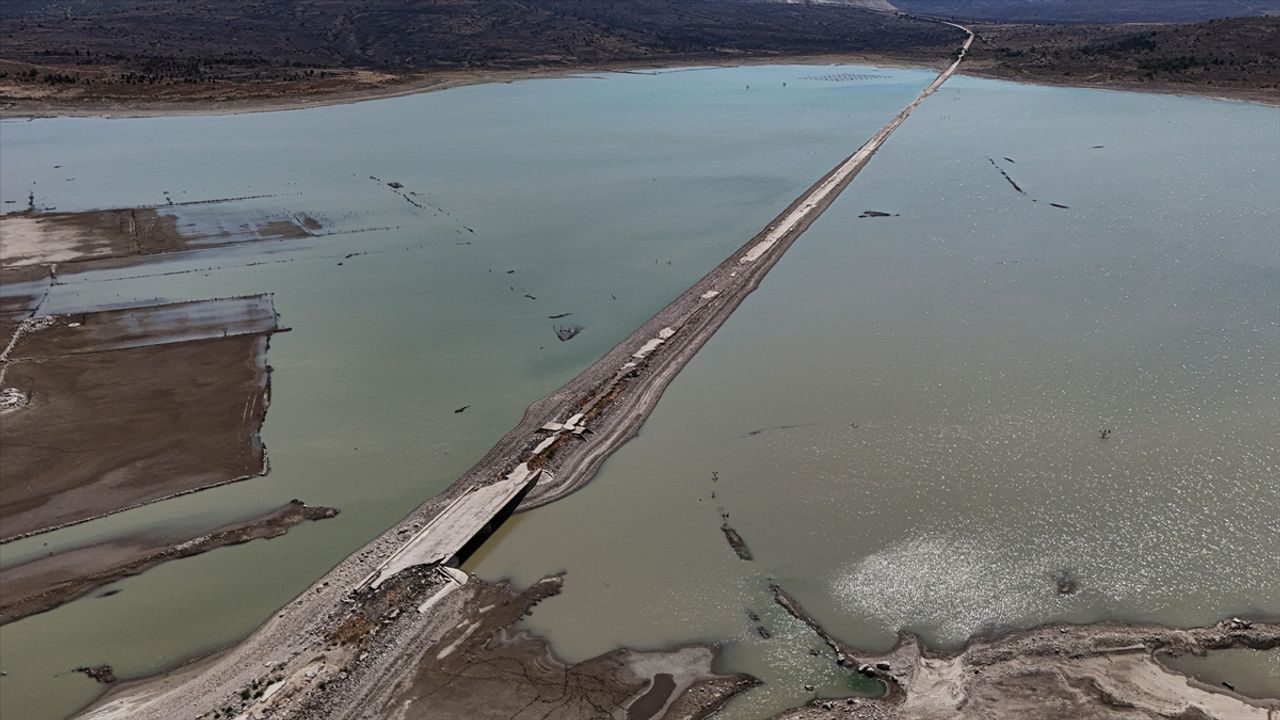 Barajda su seviyesinin düşmesiyle birlikte, baraj yapımından önce kullanılan eski İzmir-Çeşme kara yolu suların çekildiği alanda yeniden görünür hale geldi. Yürüyerek karşıya geçmenin mümkün olduğu yol, dronla görüntülendi.