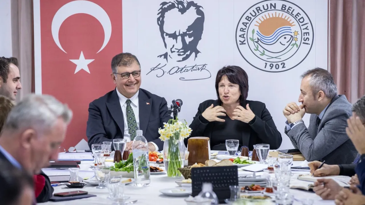 Karaburun Belediye Başkanı İlkay Girgin Erdoğan'ın ev sahipliğinde, İzmir Büyükşehir Belediyesi ve Karaburun Belediyesi bürokratlarının katılımıyla gerçekleşen toplantıda ilçenin sorunları, yurttaşların istek ve ihtiyaçları ile projeler gündeme geldi. Birlikte çalışmaya ve sorunları çözmeye devam edeceklerini ifade eden Başkan Tugay sonrasında muhtarlarla bir araya geldi.