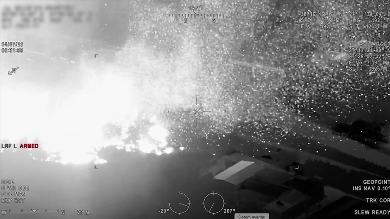 Öte yandan yangın, Türkiye'de yangınlarla mücadelede önemli görevler üstlenen Bayraktar TB2 tarafından tespit edilerek kaydedildi.