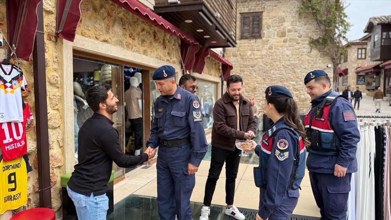 Antik kentin tarihi dokusu içerisinde gerçekleştirilen faaliyetlerde, jandarma personeli bölge esnafını iş yerlerinde ziyaret etti.