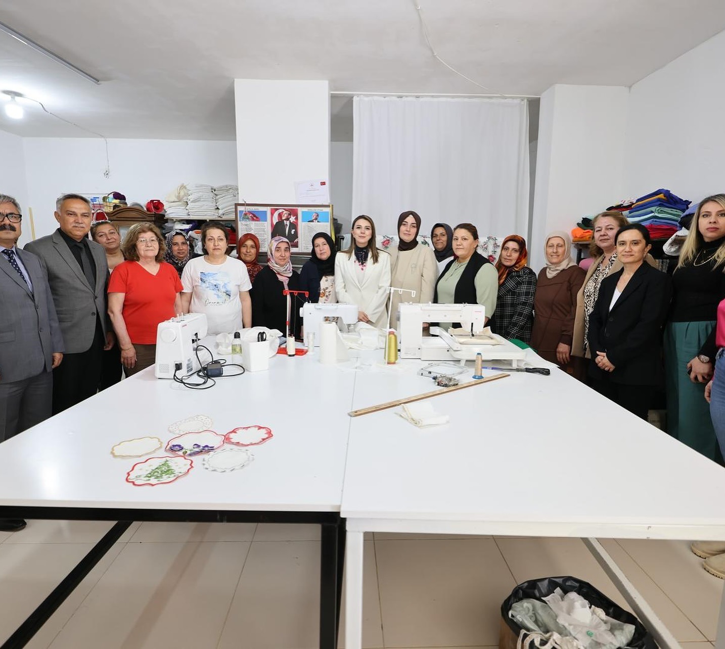 Son olarak Erzin Halk Eğitim Merkezi'nde düzenlenen “Ev Tekstili Ürünleri Hazırlama Kursu”na katılan kadınlarla bir araya gelindi. “Yüreğimizdeki Işık Projesi” kapsamında hazırlanan ürünlerin üretim süreci hakkında bilgi alınırken, kursiyerlerin istihdama ve ev ekonomisine katkı sunan çalışmaları değerlendirildi.