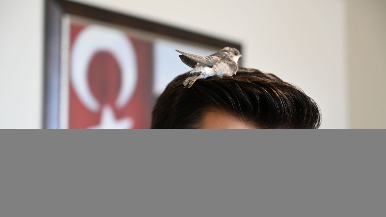 OSMANİYE (AA) - Osmaniye'de Kadirli Belediyesi çalışanları, hizmet binasına giren kırlangıç yavrusuna su ikram etti.
