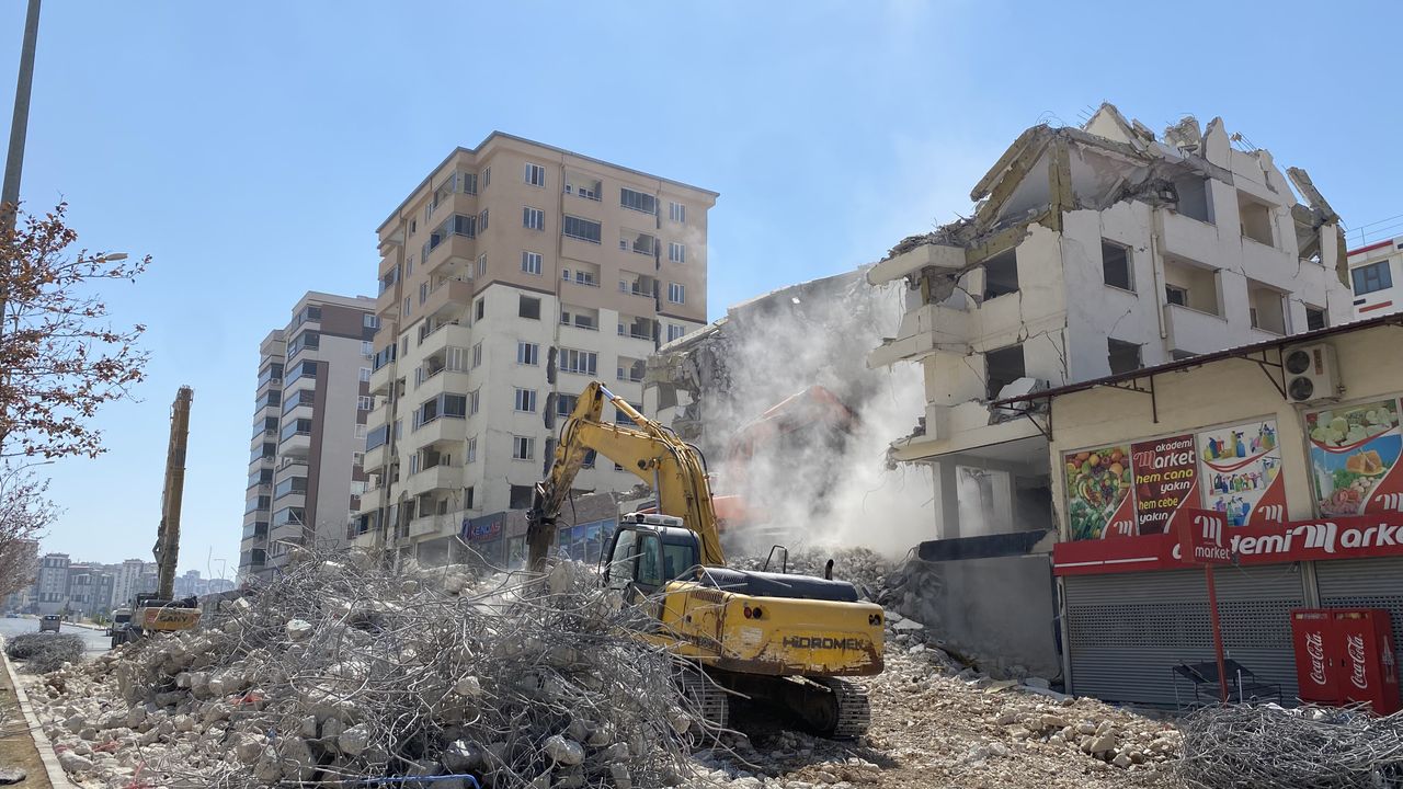 Pazarcık ve Elbistan merkezli depremlerde hasar alan binaların yıkım ve enkaz kaldırma çalışmaları sürüyor.