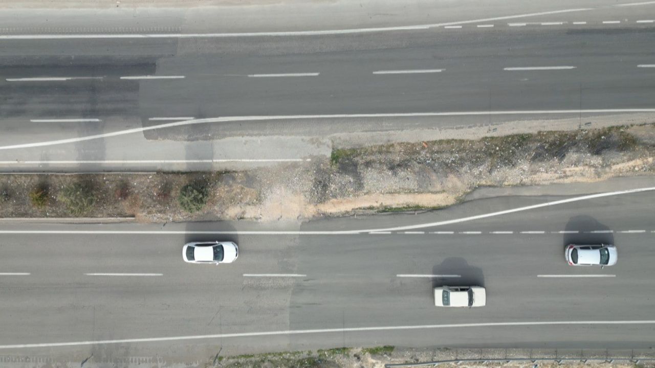 Merkez Dulkadiroğlu ilçesi Çiğli mevkiinden geçen Kahramanmaraş - Gaziantep karayolunda 6 Şubat 2023'te meydana gelen depremin izleri hala gözle görülüyor. Karayolu altından geçen fay, 6 Şubat depremleri sonrası yaklaşık 7 metre kaydı. Güzergahtaki bir araç sol şeritten seyrederken fay hattının geçtiği noktada bir anda orta şeritte kalıp yoluna devam etmek zorunda kalıyor. Depremin izlerini taşıyan yolun son durumu dron ile de görüntülendi.