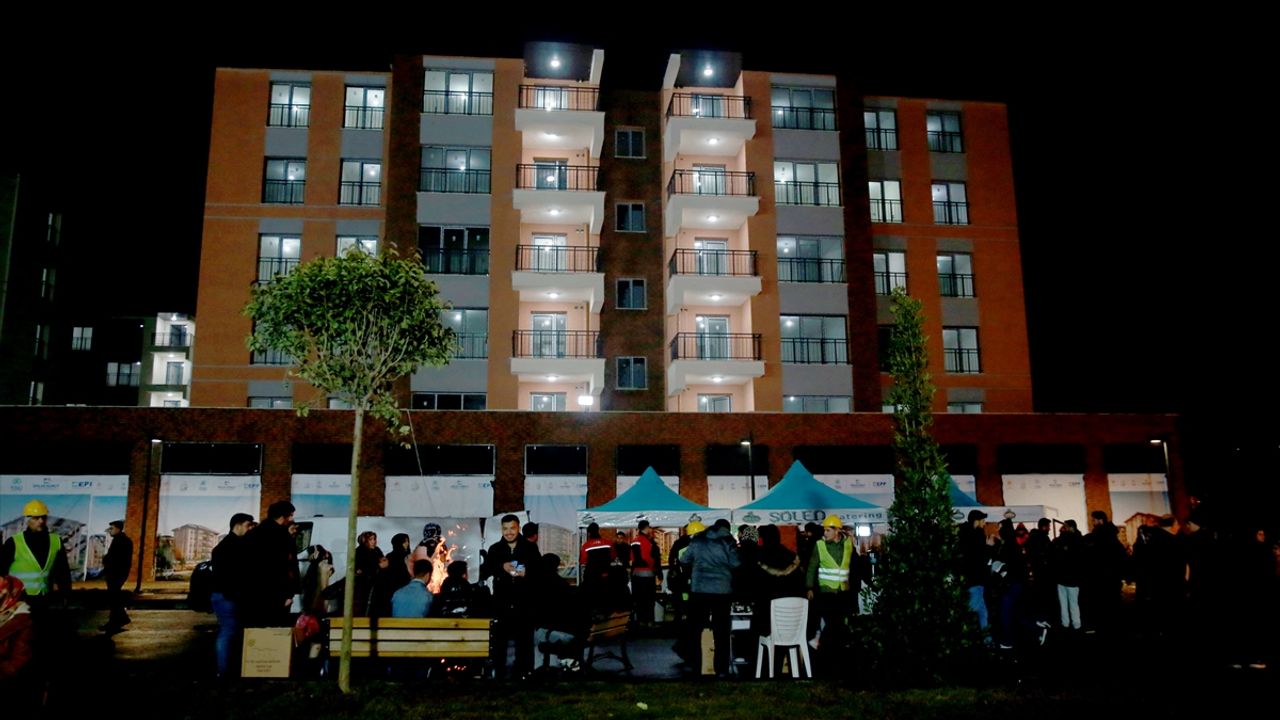 12 bloku yıkılan Ebrar Sitesi'nin yerine inşa edilen konutların önüne gelen aileler de burada ateş başında nöbet tuttu.