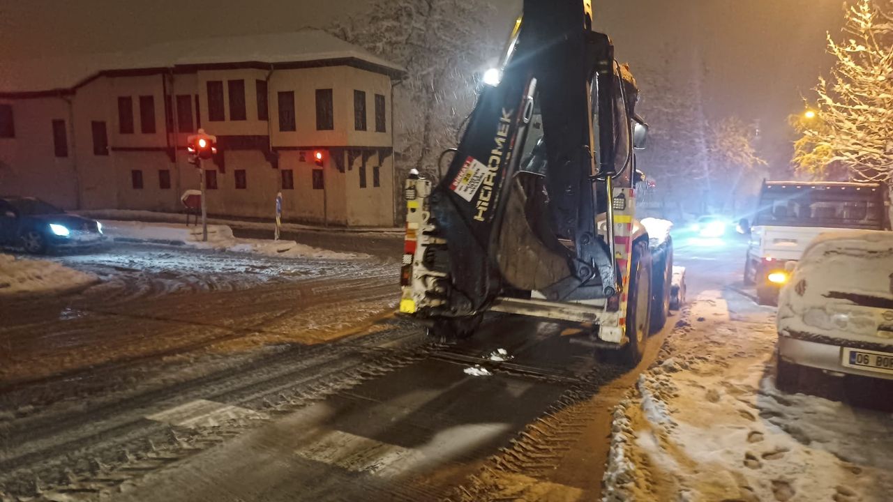 Kar ve soğuk havanın etkisini sürdürdüğü kentte, Büyükşehir ve ilçe belediyeleri ekipleri kar temizleme çalışması yürütüyor.