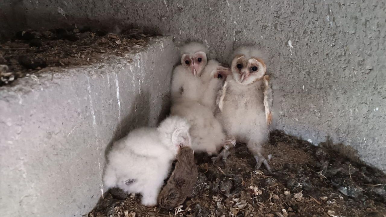 Güzelyurt Camisi'nin minaresine yuva yapan peçeli baykuşun yavrusu bulunduğu yerden düştü.