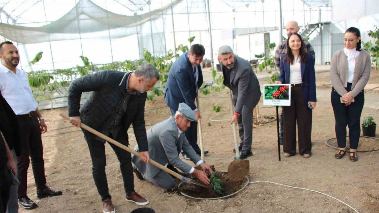 Antalya’nın Kumluca ilçesinde Akdeniz Üniversitesi Kumluca Meslek Yüksekokulu tropikal meyve serasında deneme amaçlı kahve fidanı dikildi.