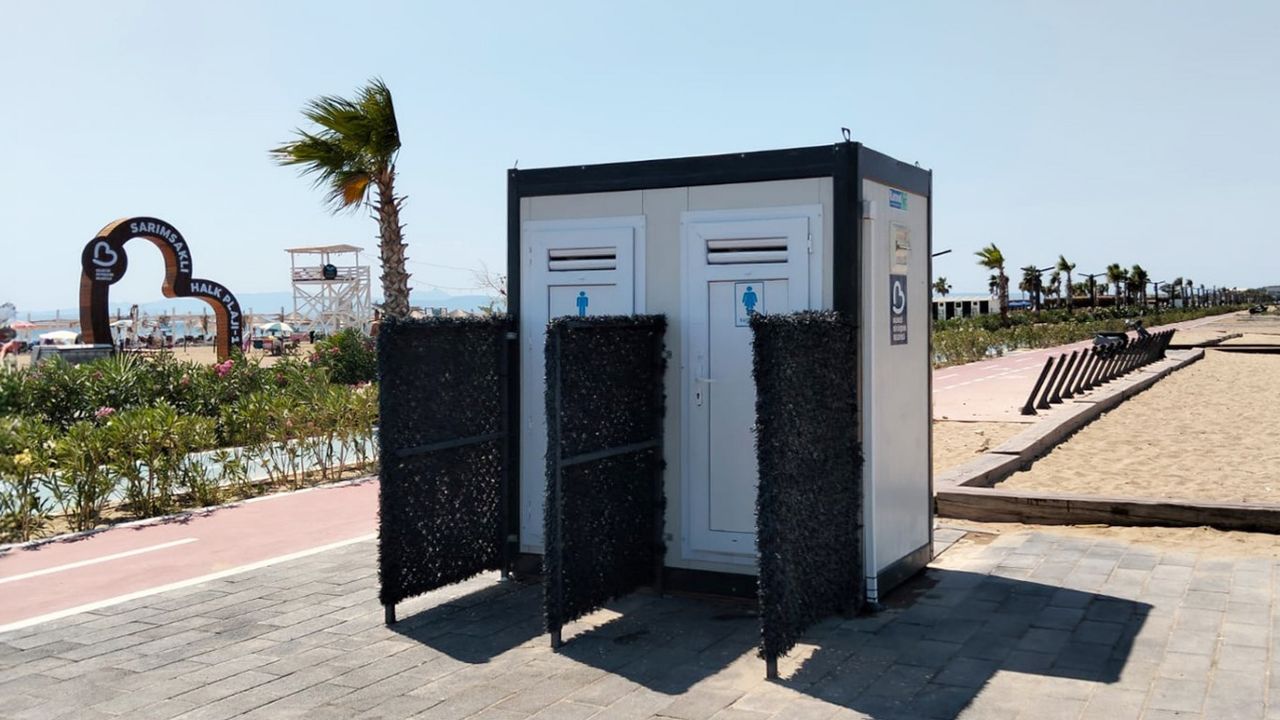 Balıkesir Büyükşehir Belediyesi'nin projesi kapsamında üretilen ikili tuvalet kabinleri, Balıkesir'in mavi bayraklı plajları Sarımsaklı, Altınkum, Altınoluk ve Erdek'te hizmete alındı.