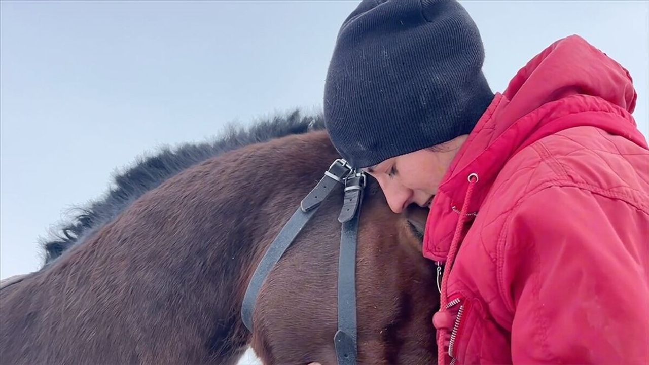 Karacaören köyündeki karlı arazide düzenli antrenman yapan genç binici, atının dayanıklılık ve hızını artırmak için sabah ve akşam çalışıyor.