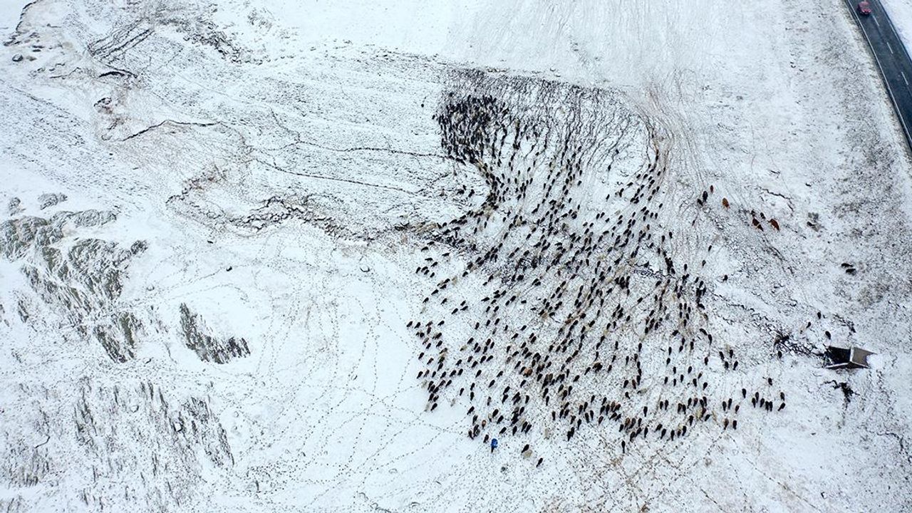 Şakir Uyusun da kışın erken geldiğini ifade ederek, sürülerini kar altında köye ulaştırmaya çalıştıklarını söyledi.