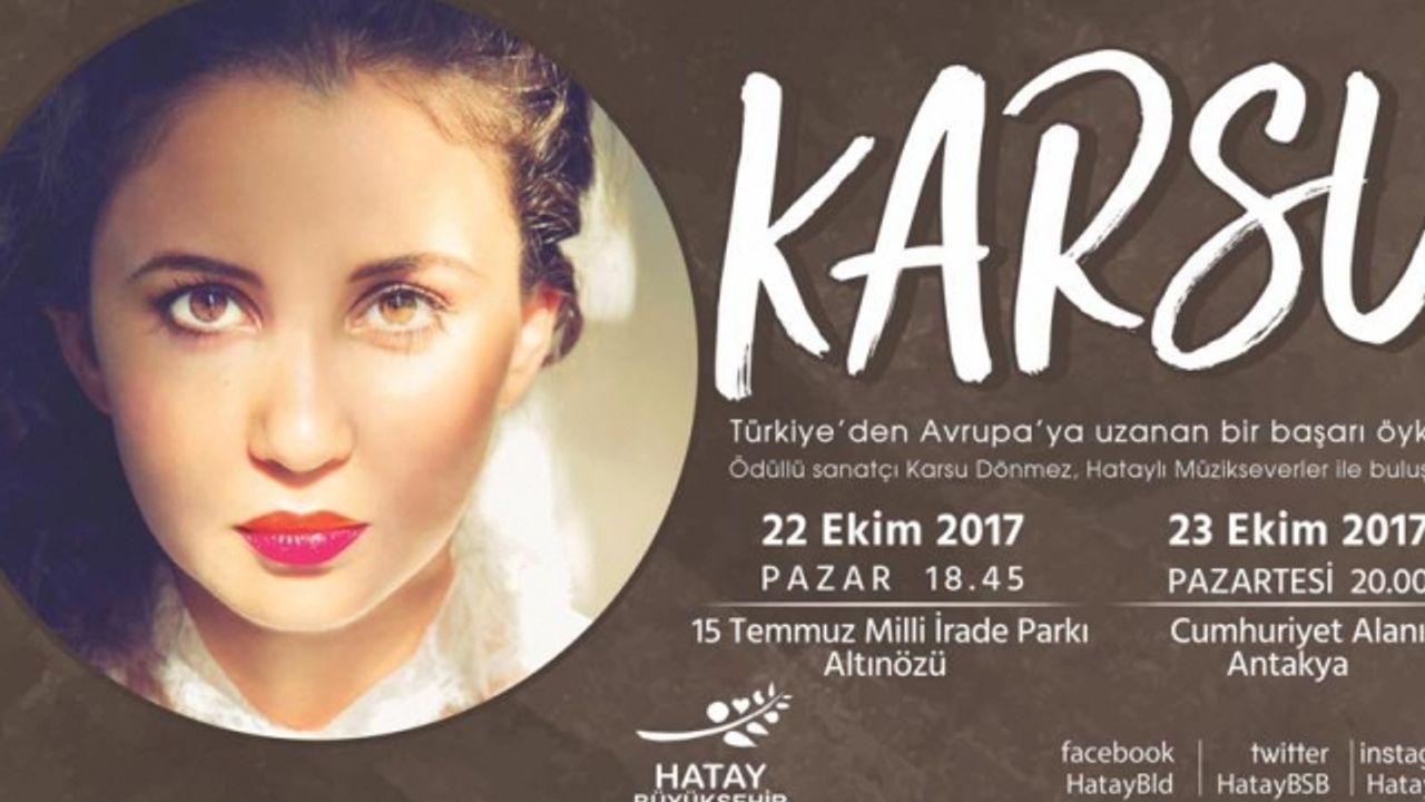 Dünya ünlü Sanatçı Karsu Dönmez, Altınözü ile Antakya İlçelerinden konser verecek.